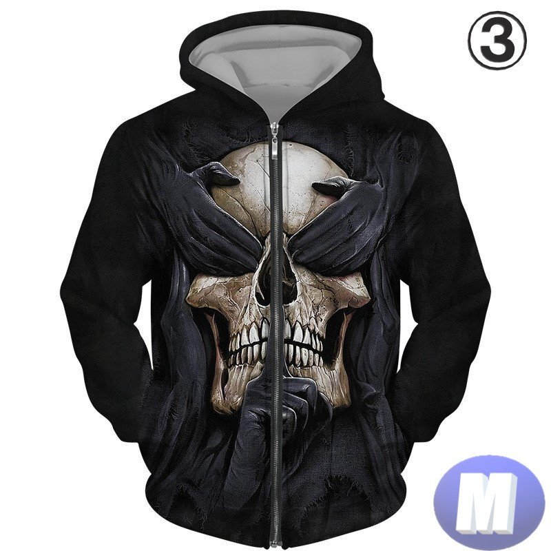 - フード付き ドクロパーカー ジップアップ カラー3 M トレーナー アウター 防寒 n712