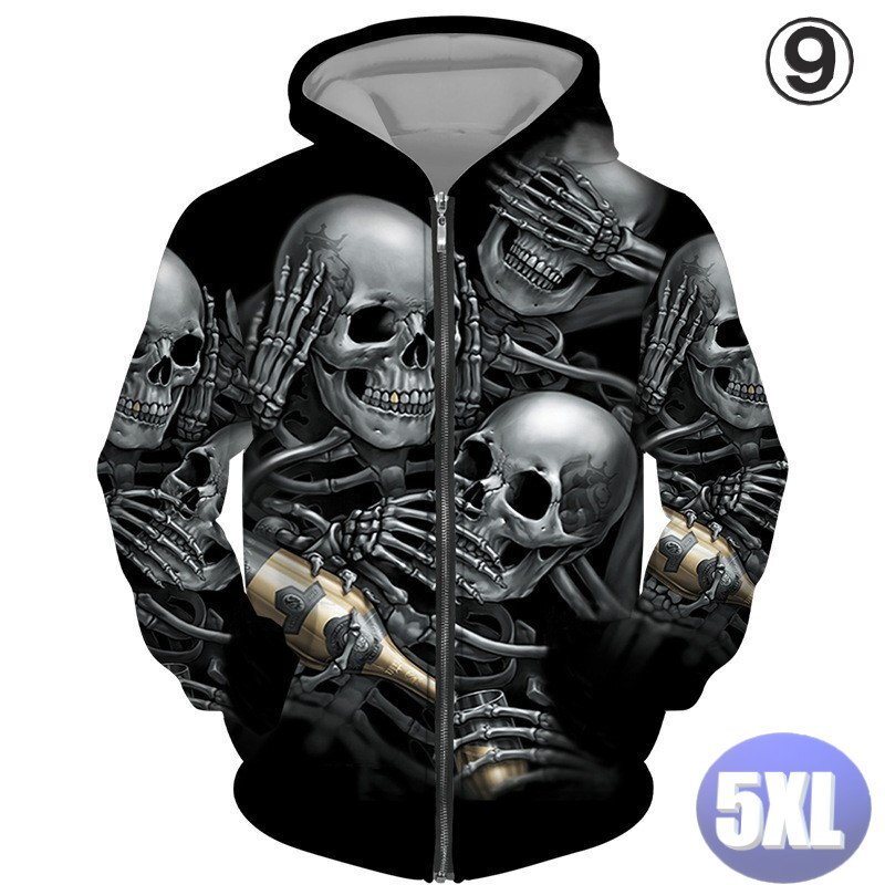 - フード付き ドクロパーカー ジップアップ カラー9 5XL トレーナー アウター 防寒 n717