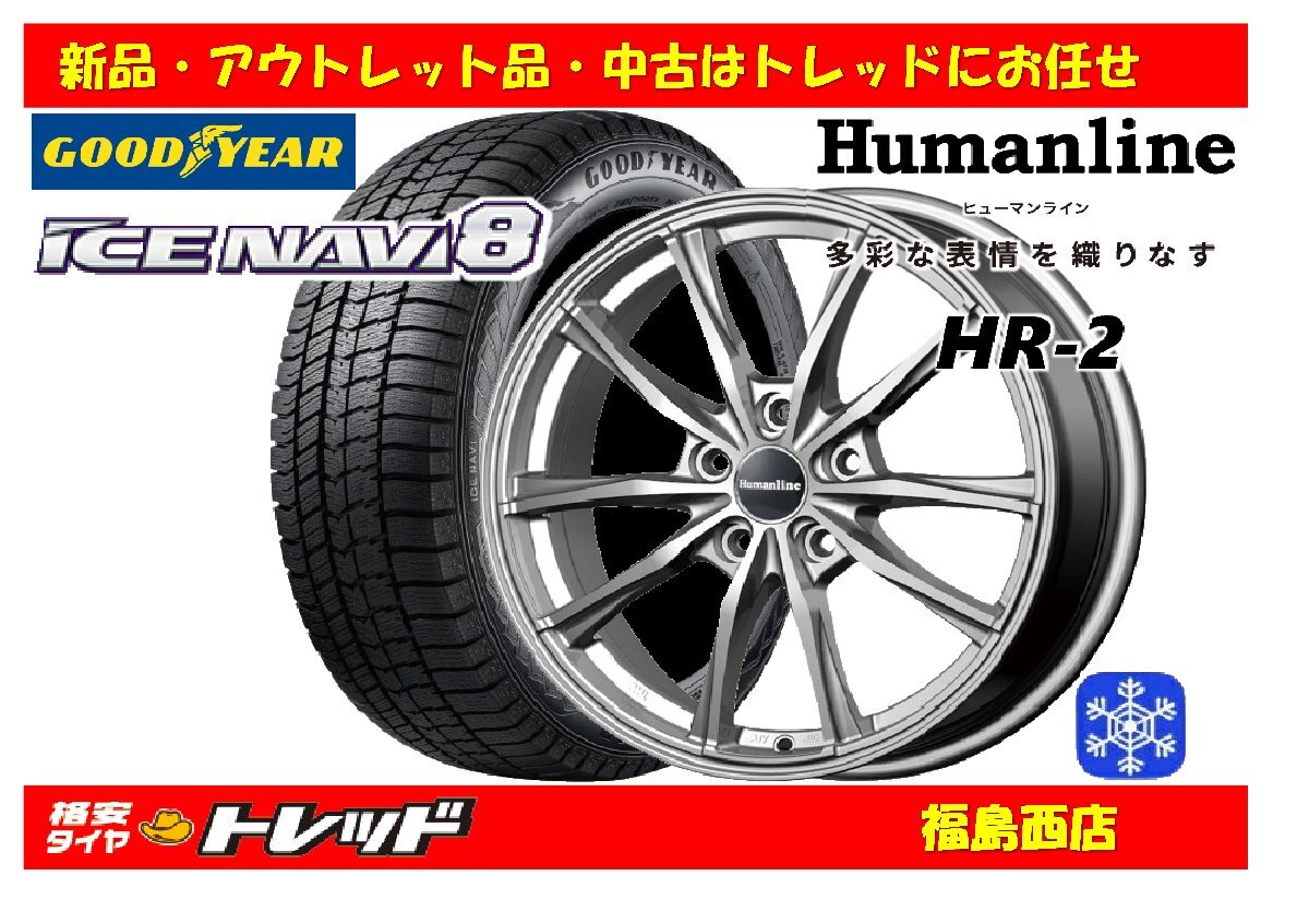 - 福島西 新品 スタッドレスタイヤホイール4本SET ヒューマンライン HR-2 17インチ 7.0J 114/5H +38 & グッドイヤー アイスナビ8 195/60R17