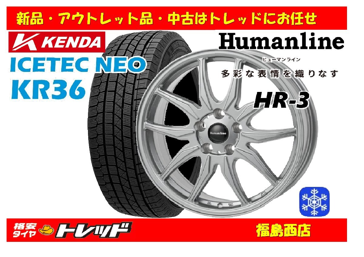 > 福島西 新品 スタッドレスタイヤホイール4本セット ヒューマンライン HR-3 15インチ 6.0J 100/5H +43 & ケンダ KR36 185/60R15 84R