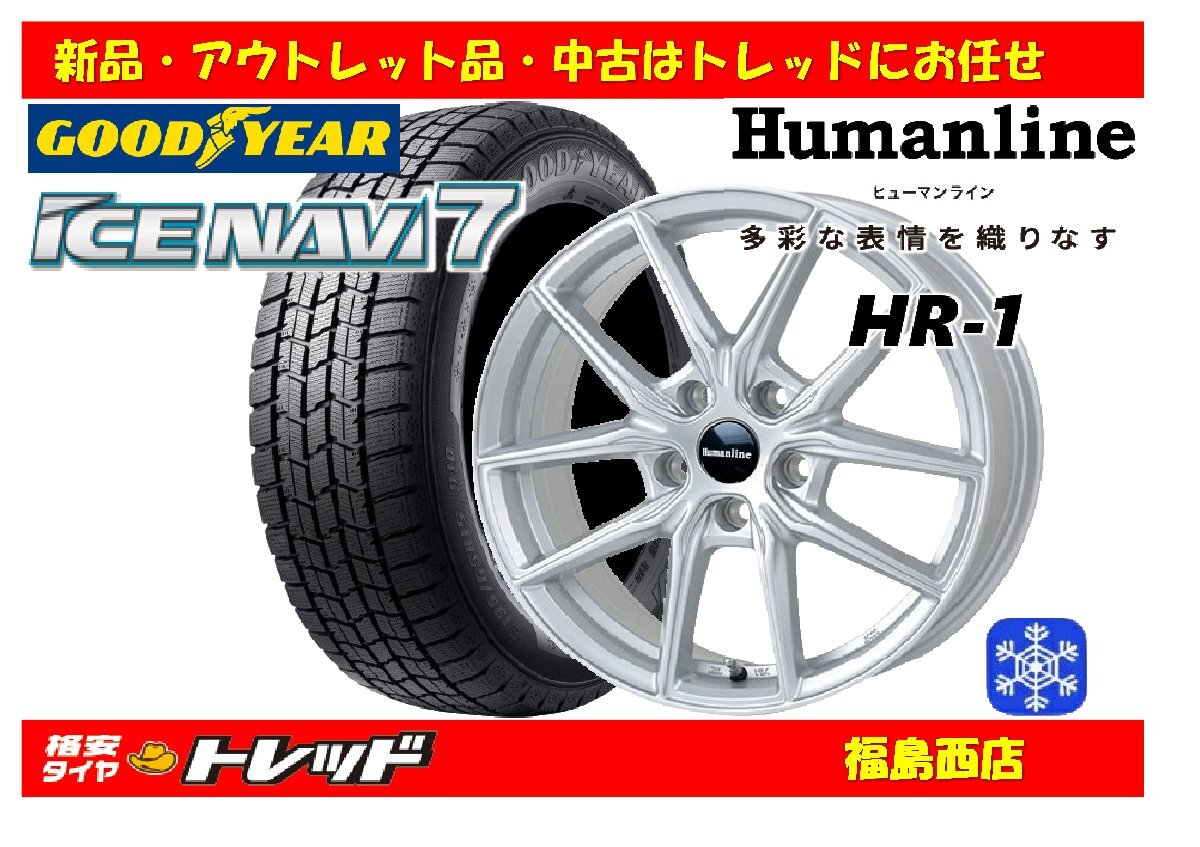 > 福島西 新品 スタッドレスタイヤホイール4本SET ヒューマンライン HR-1 17インチ 6.5J 114/5H +40 & グッドイヤー アイスナビ7 195/60R17