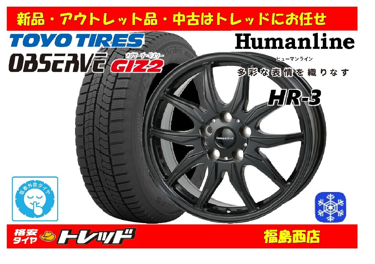 > 福島西 新品 スタッドレスタイヤホイール4本SET ヒューマンライン HR-3 17インチ 6.5J 114/5H +40 & トーヨー オブザーブ GIZ2 195/60R17
