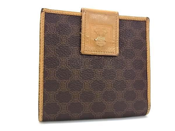 > CELINE セリーヌ ヴィンテージ マカダム柄 PVC×レザー 二つ折り 財布 ウォレット 小銭入れ 札入れ レディース ブラウン系 DK2996