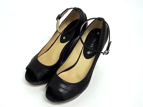 - ■美品■ CELINE セリーヌ レザー オープントゥ ウェッジソール パンプス サイズ サイズ 38 (約25.0cm) 靴 シューズ ブラック系 DK6307