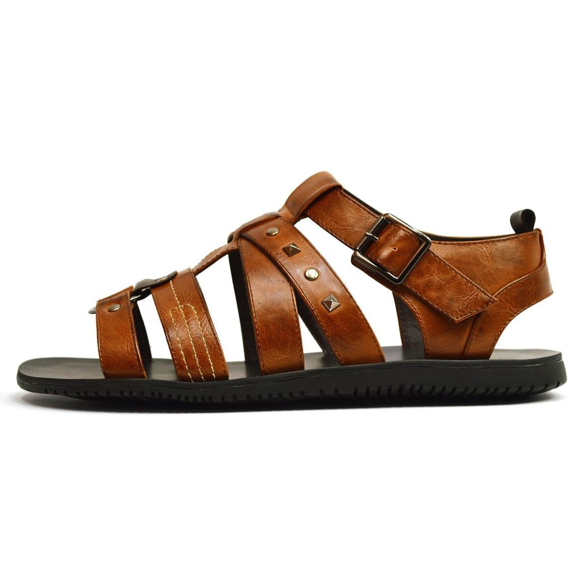 > 新品■25.5cm~26cm メンズ グラディエーター サンダル 脱ぎ履き楽々 アンクル丈 スタッズ リング ベルト カジュアルシューズ【エコ配送】