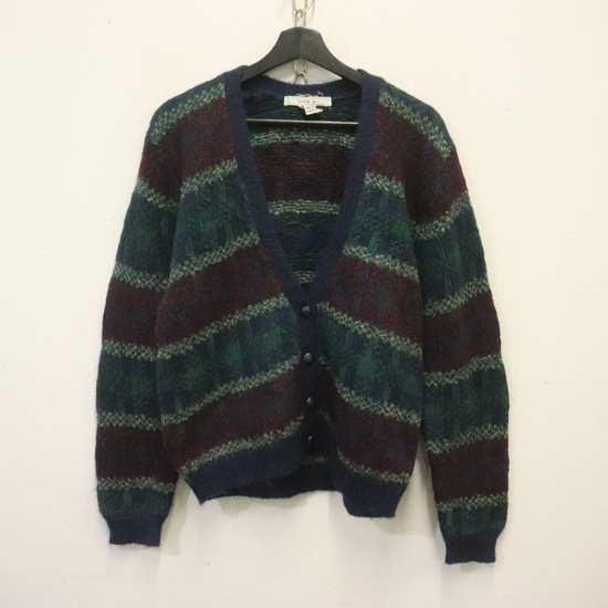 > L131 90sビンテージ LISEJ アクリルニットカーディガン■1990年代製 表記Sサイズ レディース ネイビー マルチカラー 総柄 アメカジ 古着