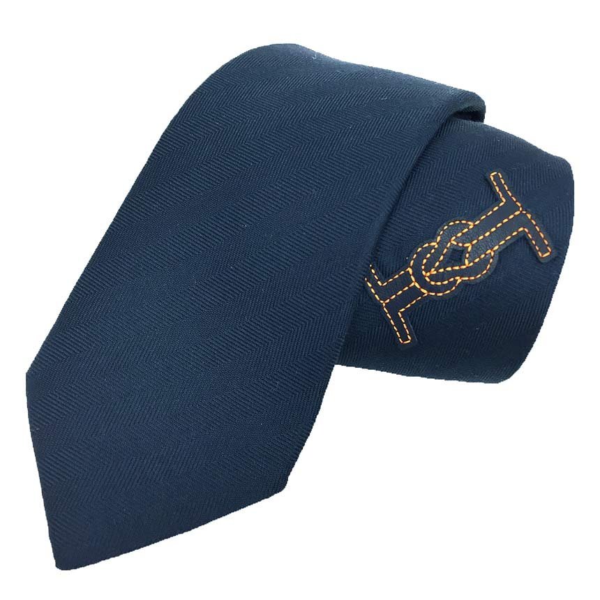 - 送料無料 希少 セール HERMES エルメス ネクタイ シルク ネイビー レザーアップリケ メンズ 箱付き 新古品 aq9491