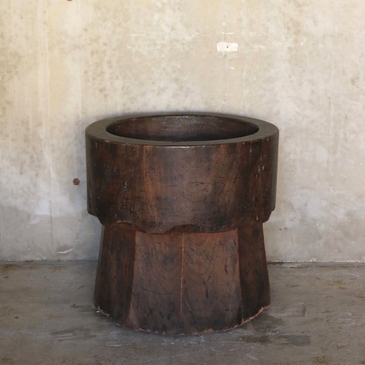 - 時代 欅造り袴形木臼 竪臼 古民具 古道具 和モダン インテリア◇28-M1