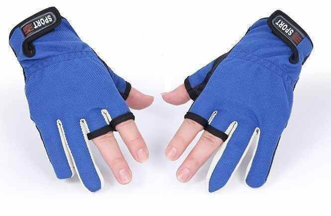 - 送料0円 釣り用 手袋 ブルー 三本指出し 滑り止め 汗吸収 レジャー スポーツ フィッシング 釣り 指先 3本 手 グローブ 作業 針 魚 海