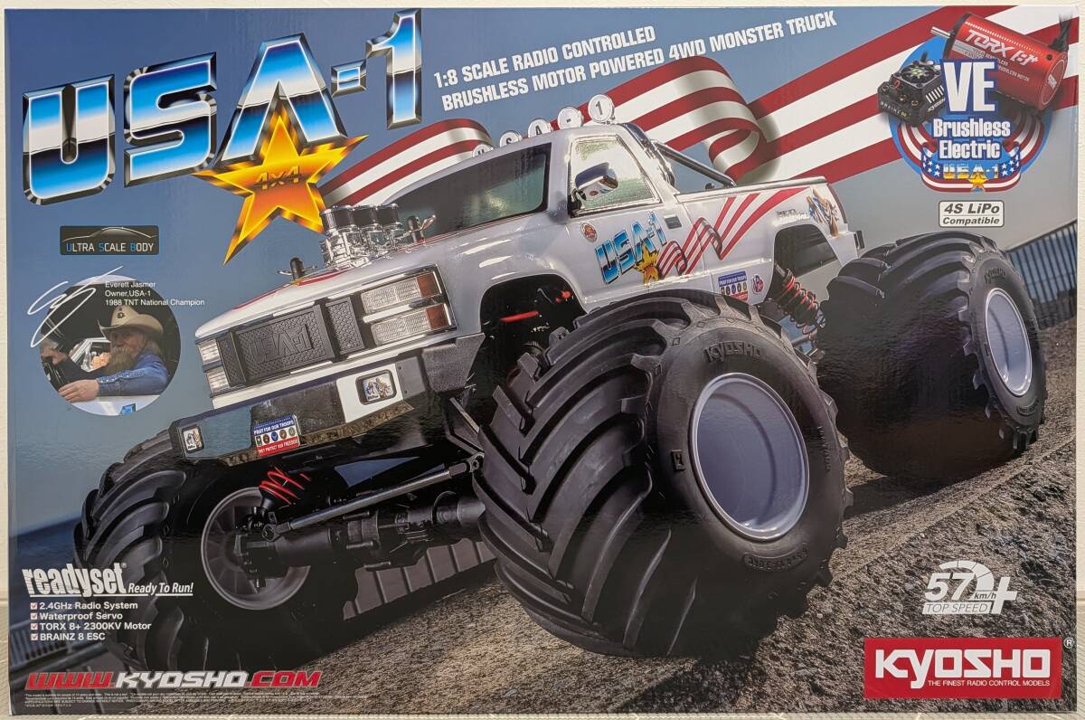 - 【新品】【おまけ付き】1/8 RC ラジコン ブラシレスモーターパワード 4WD モンスター トラック USA-1 VE レディセット KT-231P+付 34257D