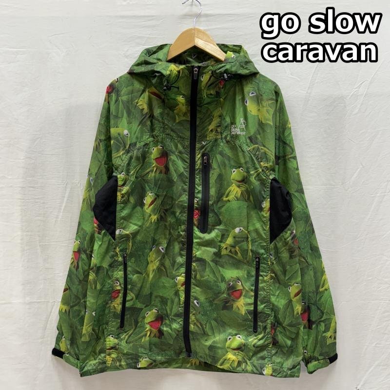 > ゴースローキャラバン カーミット 総柄 ナイロン ジャケット マウンテンパーカー 脇メッシュ 薄手 -