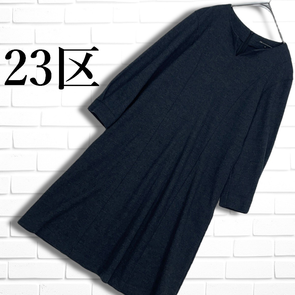 - ◆美品◆ 23区 ウール 100% 長袖 ロング ワンピース グレー レディース ◆日本製 送料無料◆ 0085K◇