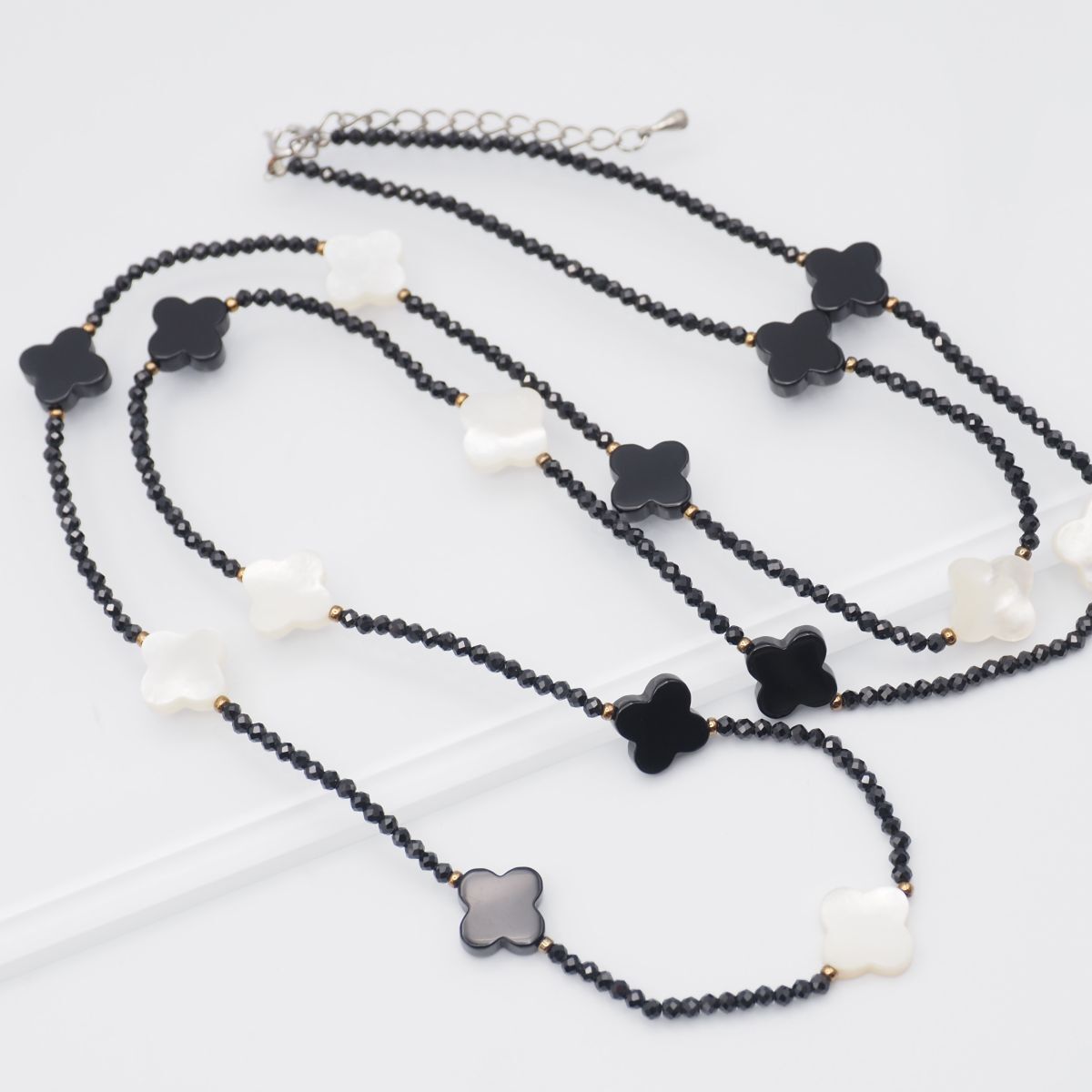 - H292 オニキス シェル ネックレス クローバー デザイン シルバー