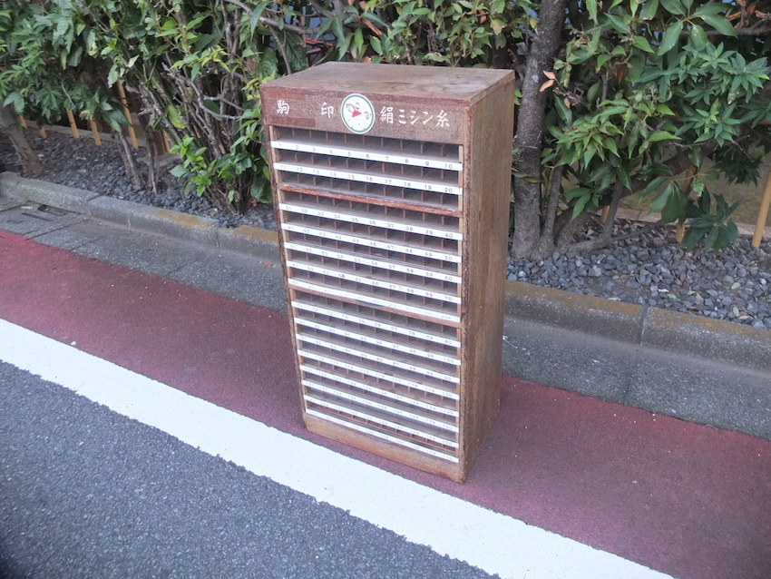 - ビンテージ「駒印絹ミシン糸 収納ケース」木製 ミシン糸収納棚 木製引き出し 収納棚 昭和レトロ Vintage Wooden Sewing Box ※直接引取可能