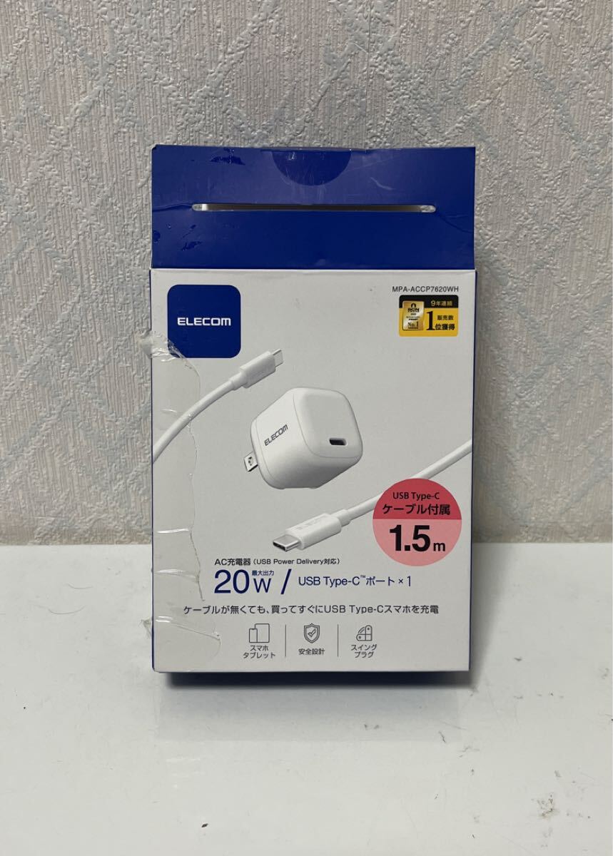 - 711i0703 エレコム 充電器 Type-C 20W USB PD対応 USB-C 1ポート ケーブル付属 1.5m 折りたたみ式プラグ ホワイト
