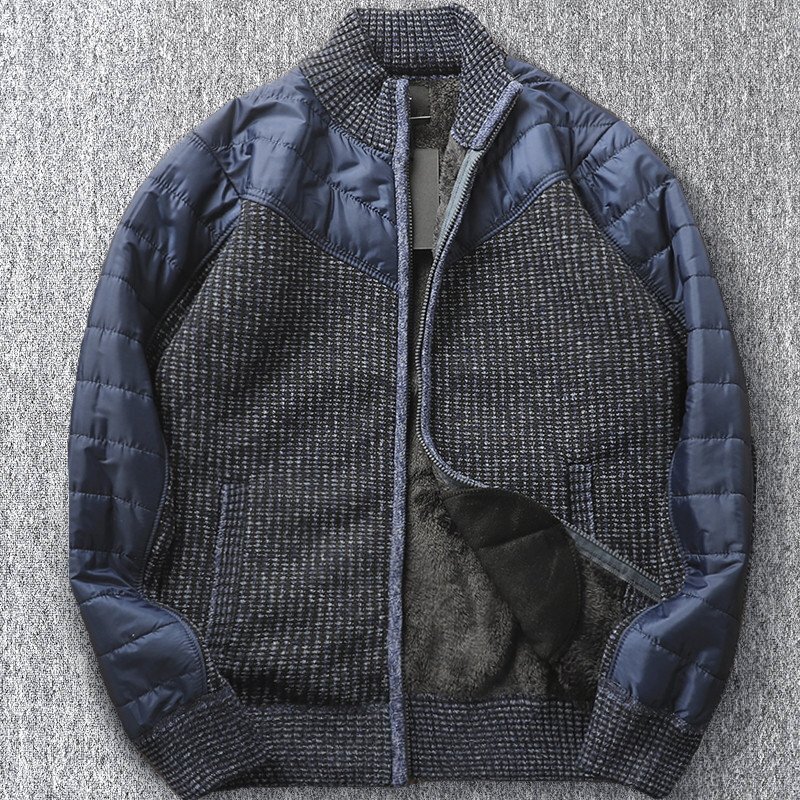 > 新品 ジャケット 切り替えニット スタンドカラー キルティング 裏ボア 中綿 秋冬 メンズ 厚手 暖かい カーディガン ブルゾン 紺 T6191-2XL