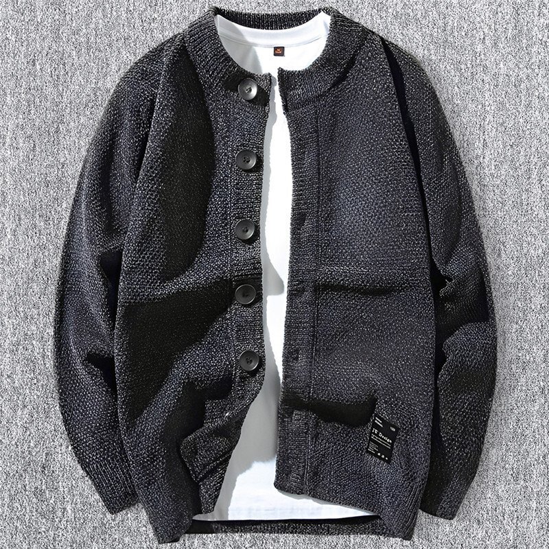 - 新品 DCKMANY シェニール ウール混 カーディガン ストレッチ 厚手 暖かい 秋冬 無地 ラウンドネック メンズ ニットセーター 灰 T5138-L