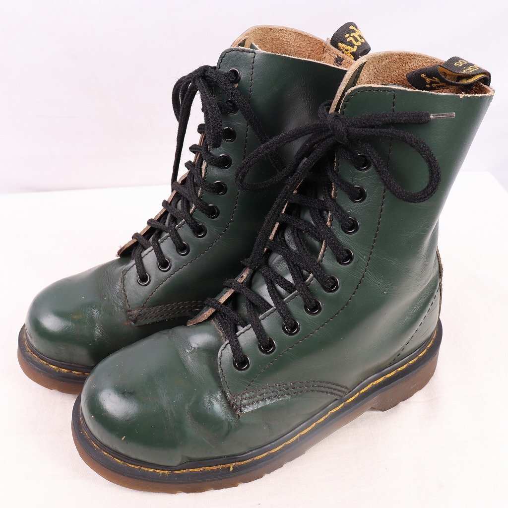 > 英国製 ドクターマーチン UK4/22.5cm-23.0cm/10ホール スチールトゥ 緑 イングランド製 ブーツ dr.martens レディース 古着 中古 dh4130
