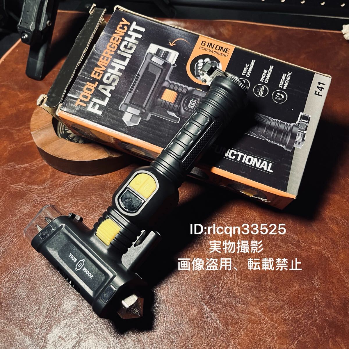 > アウトドア 6in1多機能ツール セット LEDランプ 懐中電灯 充電式 強力マグネット 安全ハンマー キャップ 野外登山