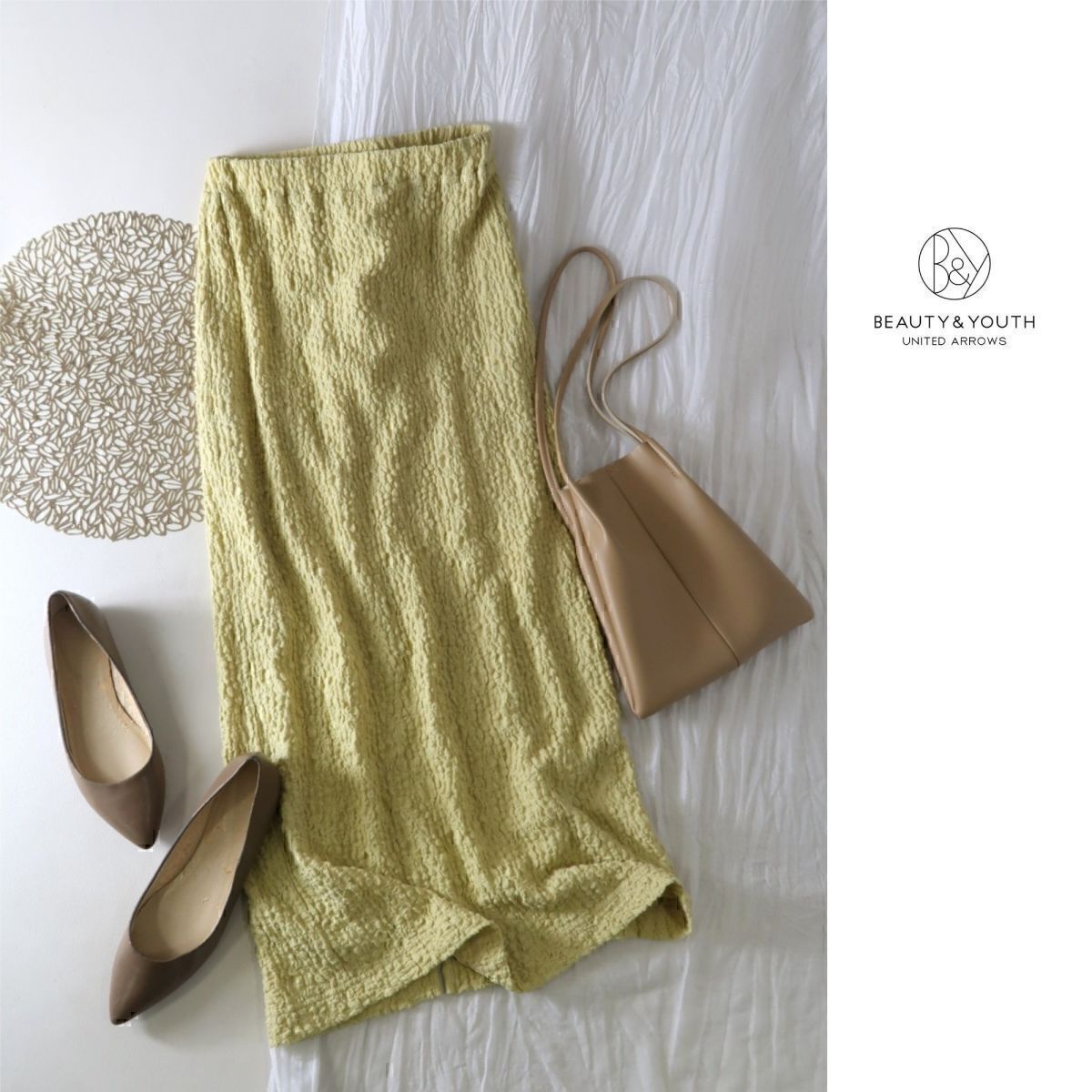 - 1.1万☆ユナイテッドアローズ/BEAUTY & YOUTH☆洗える ウエストゴム シャーリングタイトスカート Sサイズ☆M-B 2752
