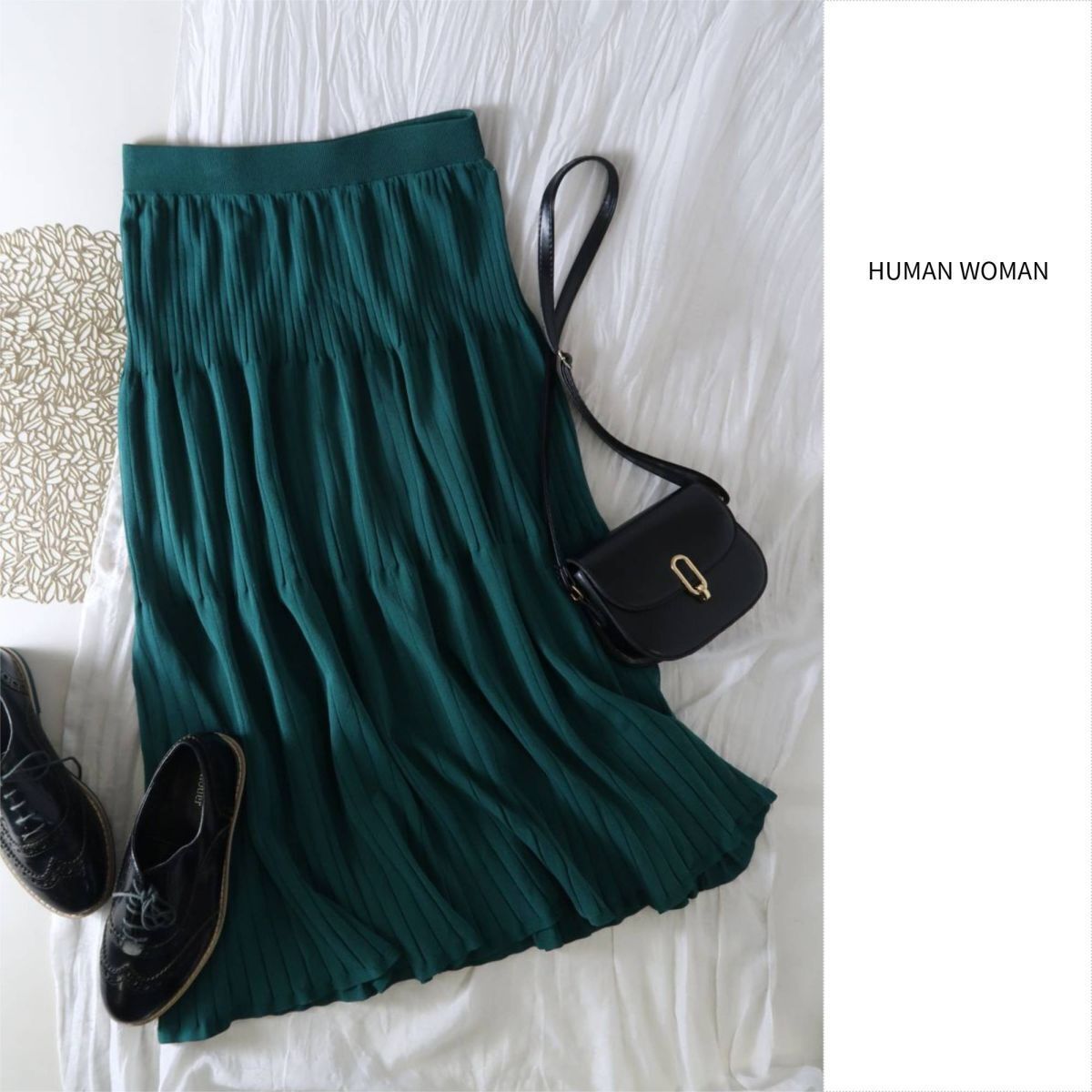 - 1.9万☆超美品☆ヒューマンウーマン HUMAN WOMAN☆ニットプリーツスカート Mサイズ☆A-O 6145