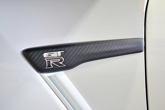 - 「RSW」GT-R(R35)MY14~MY15用フェンダーエンブレムパネルx左右(綾織りブラックカーボン/マット塗装仕上げ)