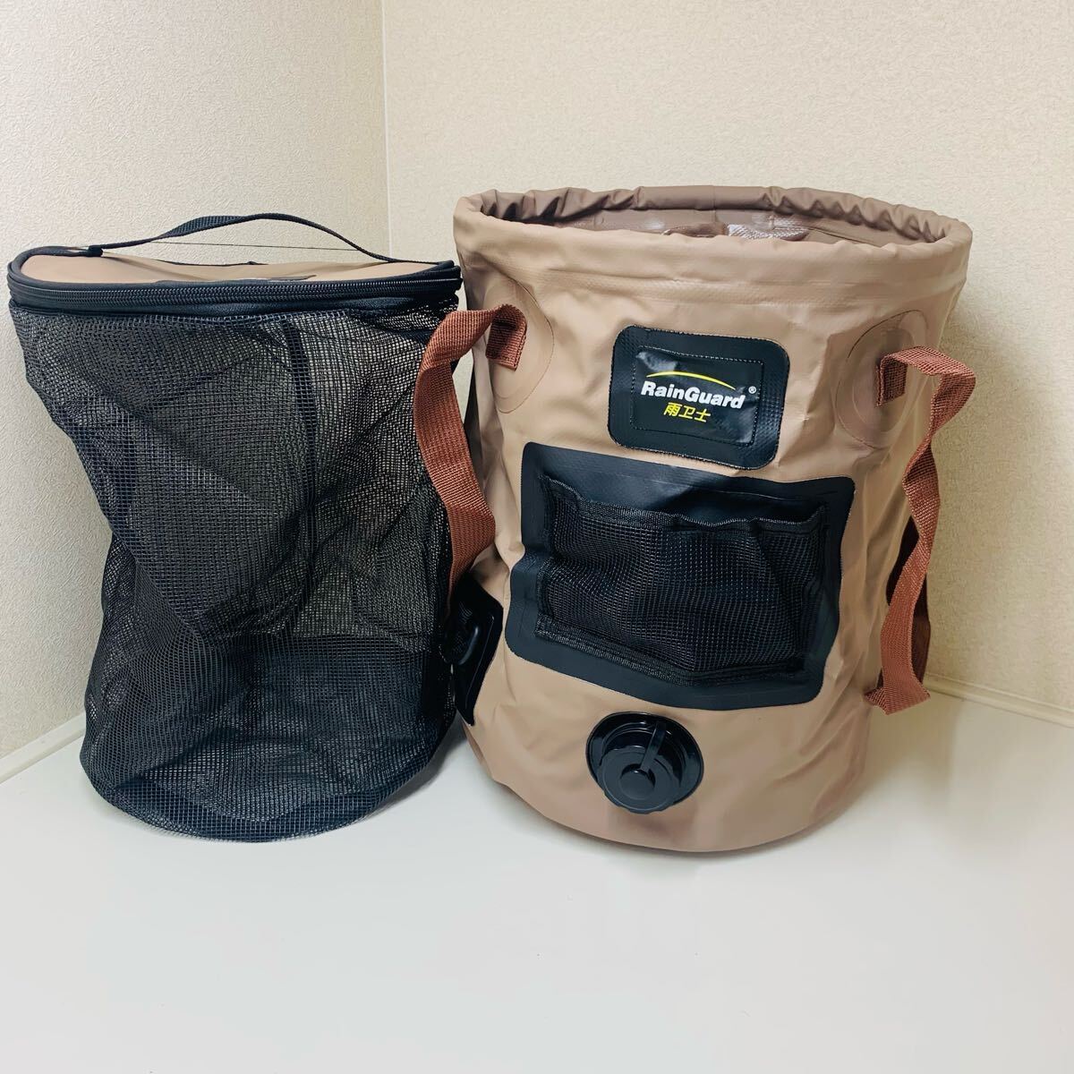 - 限定色 アウトドア 折りたたみ バケツ 自立バケツシンク軽量 EVA素材 大容量 25L 網袋付き 27x34cm キャンプ 野外登山 釣り