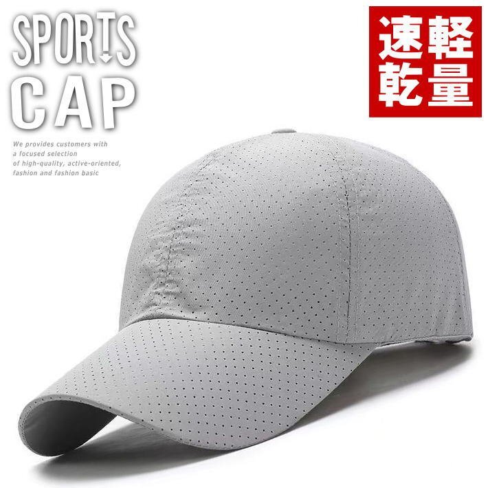 - キャップ 帽子 メッシュキャップ ランニングキャップ メンズ レディース 速乾 軽量 アジャスタータイプ 7987076 ライトグレー 新品