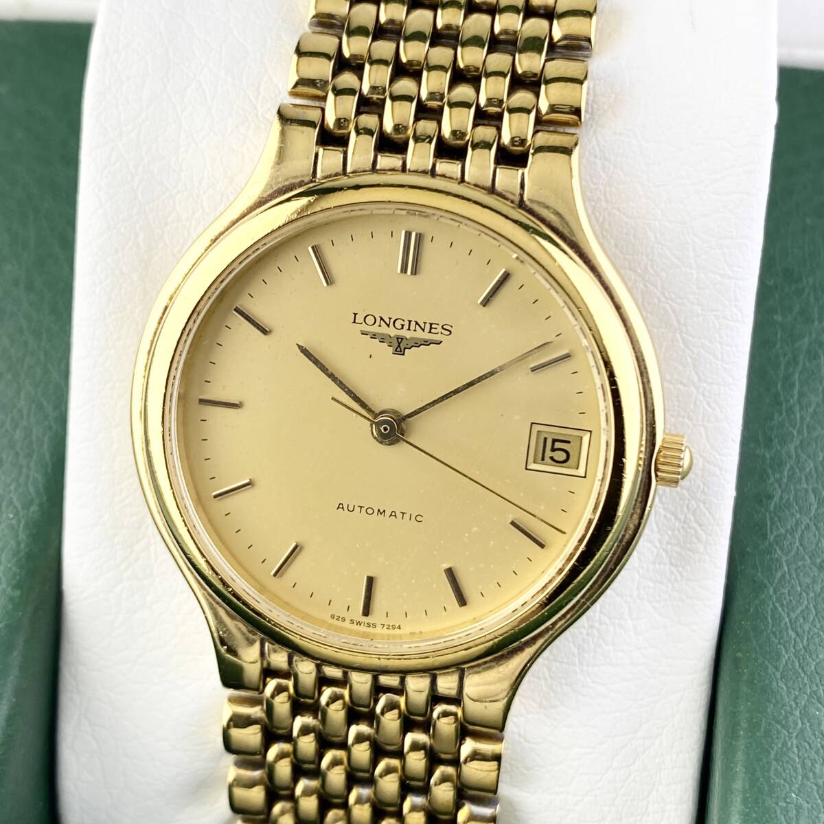 > 【1円〜】LONGINES ロンジン 腕時計 メンズ AT 自動巻 FLAGSHIP フラッグシップ ゴールド文字盤 7294 ラウンドフェイス デイト 可動品