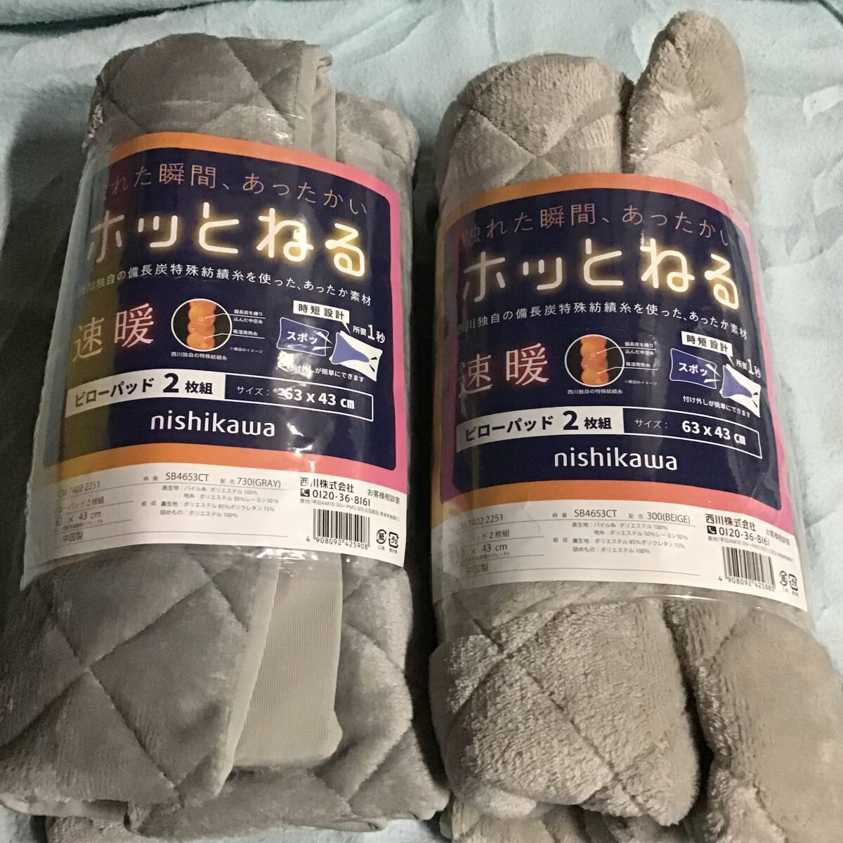 - 《 H 648 》★新品未使用★ 西川「ホッとねる ピローパッド 2枚組」ベージュ グレー 2セットまとめ 枕カバー コストコ仕入れ 定価1897円