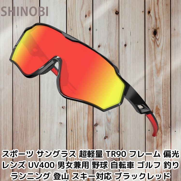 - スポーツ サングラス 超軽量 TR90 フレーム 偏光 レンズ UV400 男女兼用 野球 自転車 ゴルフ 釣り ランニング 登山 スキー ブラックレッド