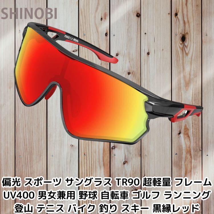 > 偏光 スポーツ サングラス TR90 超軽量 フレーム UV400 男女兼用 野球 自転車 ゴルフ ランニング 登山 バイク 釣り スキー 黒縁レッド