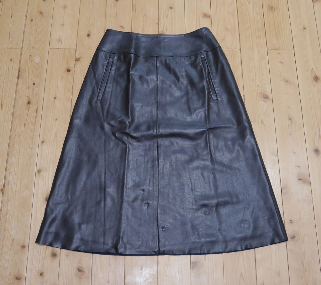 - レザースカート フェイクラムスキンフレアスカート エムプルミエブラック