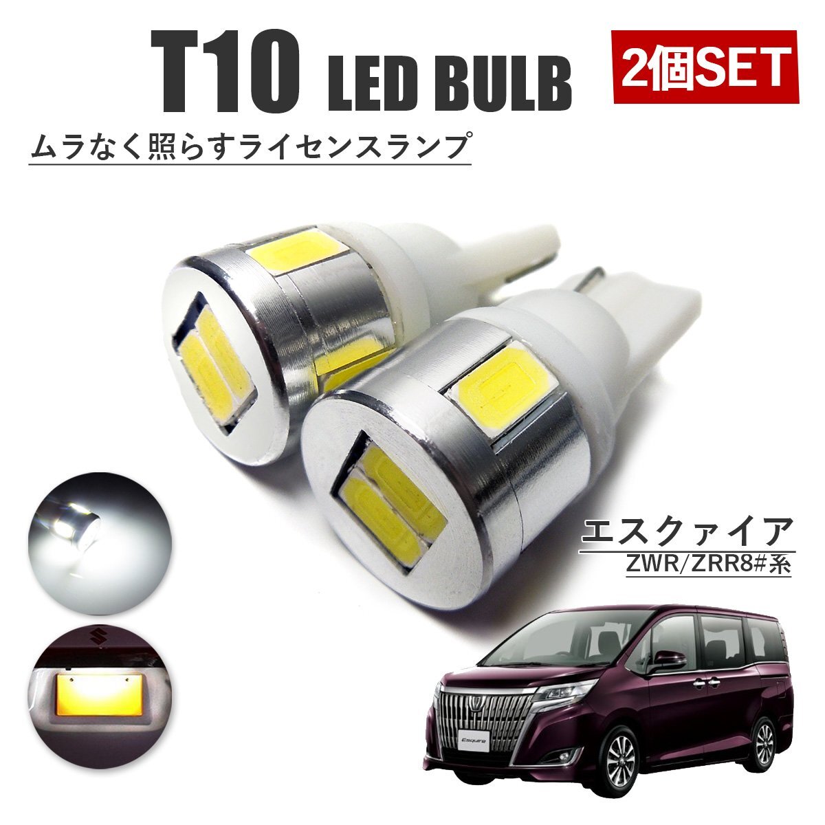 - エスクァイア T10 高品質 ナンバーランプ led バルブ ナンバー灯 ライセンスランプ 3W SUMSUNG 6灯 2個 ホワイト 外装