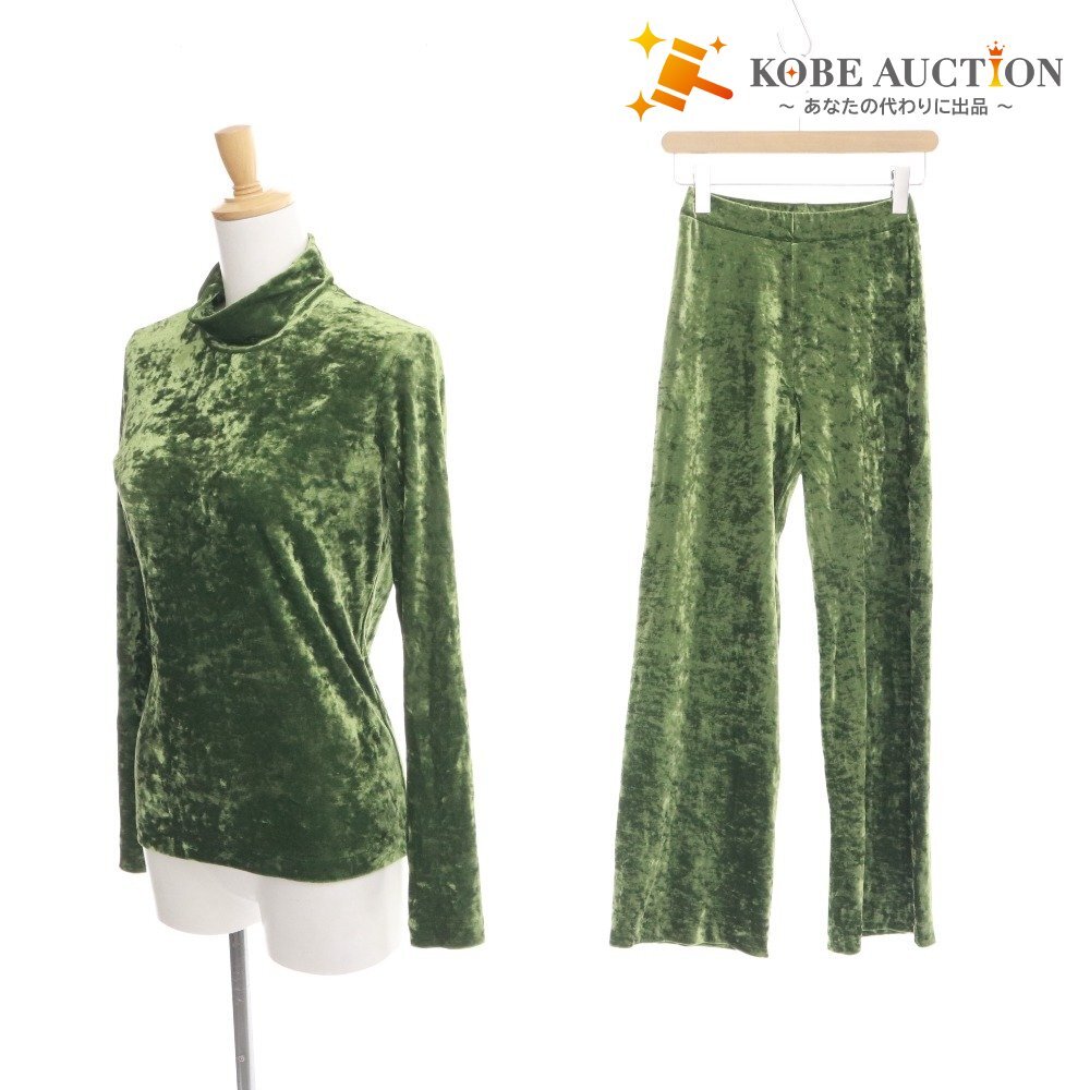 > ■ イッセイミヤケ カットソー パンツ セットアップ ベロア ハイネック レディース トップスM ボトムスS グリーン