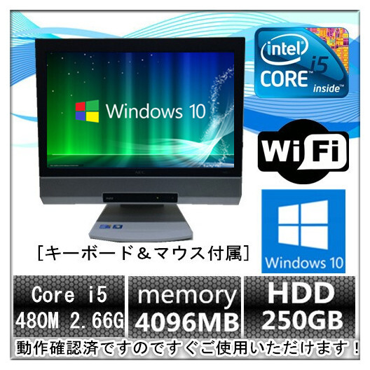 > Windows 10 NEC19型ワイド一体型 Core i5 480M 2.66G メモリ4G