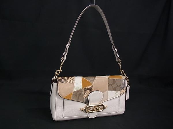 - 1円 ■美品■ COACH コーチ 91090 レザー パッチワーク ハンドバッグ ショルダーバッグ レディース ホワイト系×マルチカラー FS5580