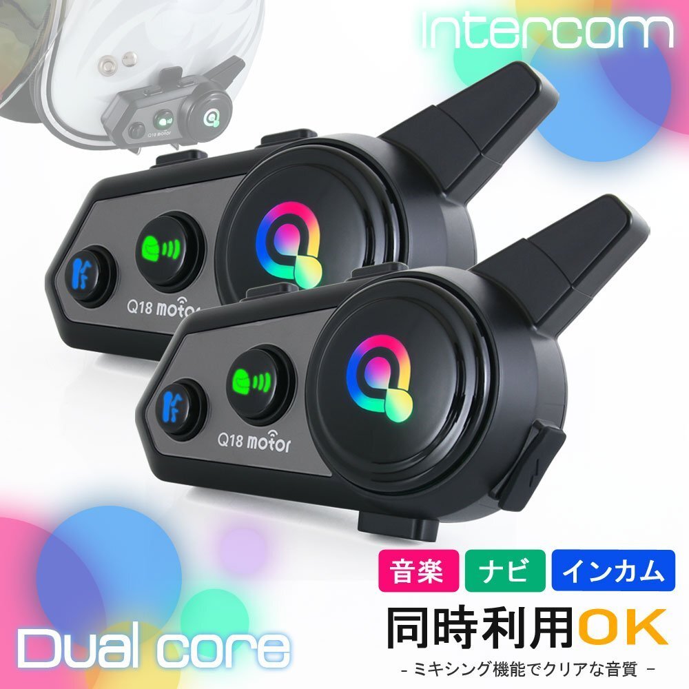 > デュアルチップ インカム バイク Q18 2台セット 音楽共有 日本語説明書 Siri 音声アシスト ナビ 通話 防水 ヘッドセット Bluetooth