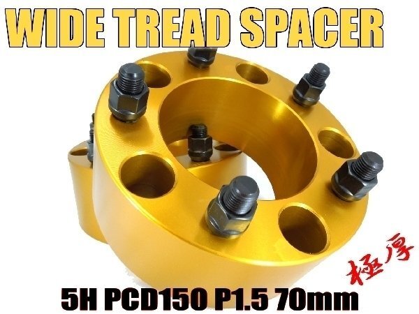 - ランクル100 200 ワイドトレッドスペーサー 2枚組 PCD150 70mm ゴールド