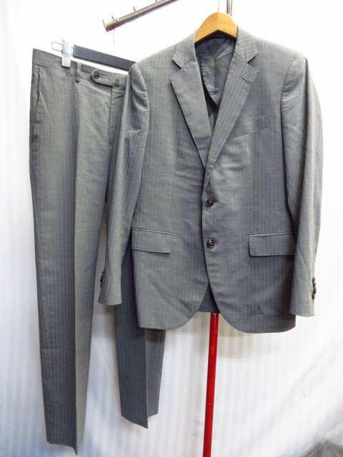 - ビームス スーツ上下セットアップ メンズ44 グレーストライプ テーラードジャケット スラックスパンツ ブレザー ビジネス フォーマル11052
