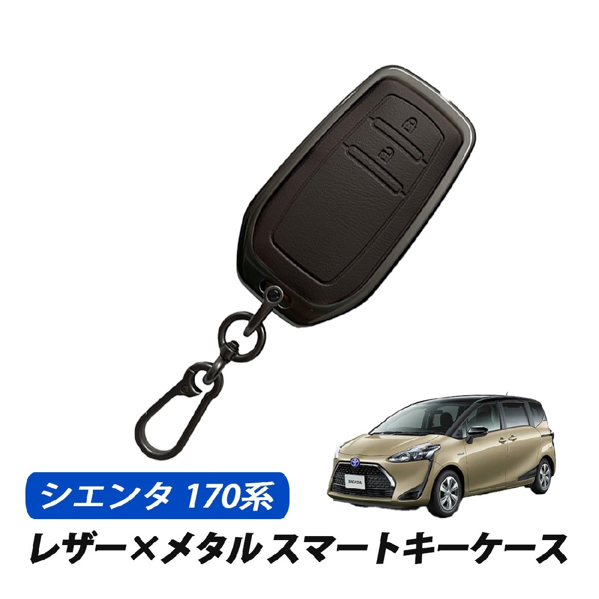 - シエンタ 170系 スマートキーケース キーカバー レザー メタル トヨタ 2ボタン 専用設計 キーケース ブラウン