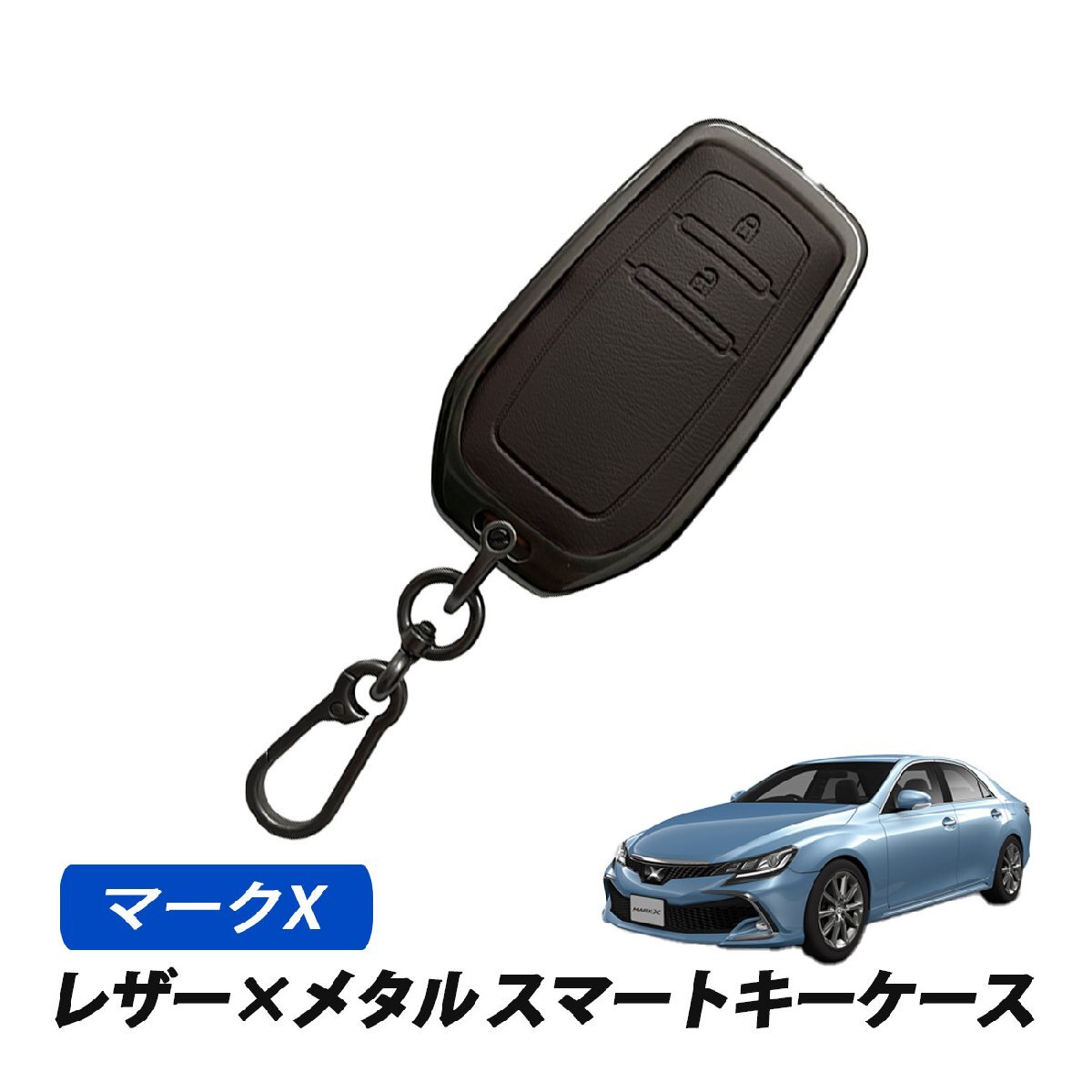 - マークX スマートキーケース キーカバー レザー メタル トヨタ 2ボタン 専用設計 キーケース ブラウン