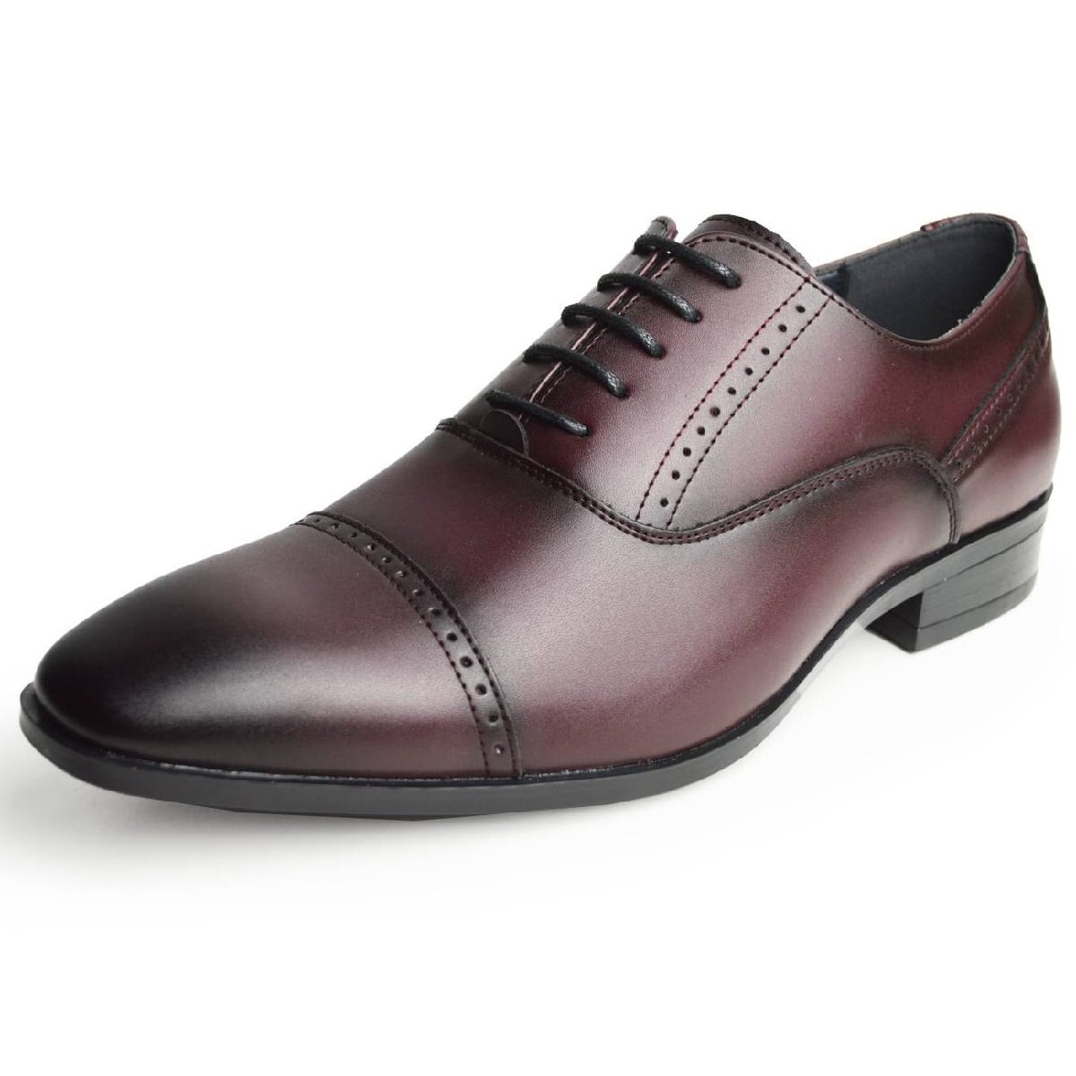 - 新品■25cm ビジネスシューズ メンズ クッションインソール 革靴 内羽根 レースアップ ストレートチップ 幅広 EEE 3E 制菌 再生皮革