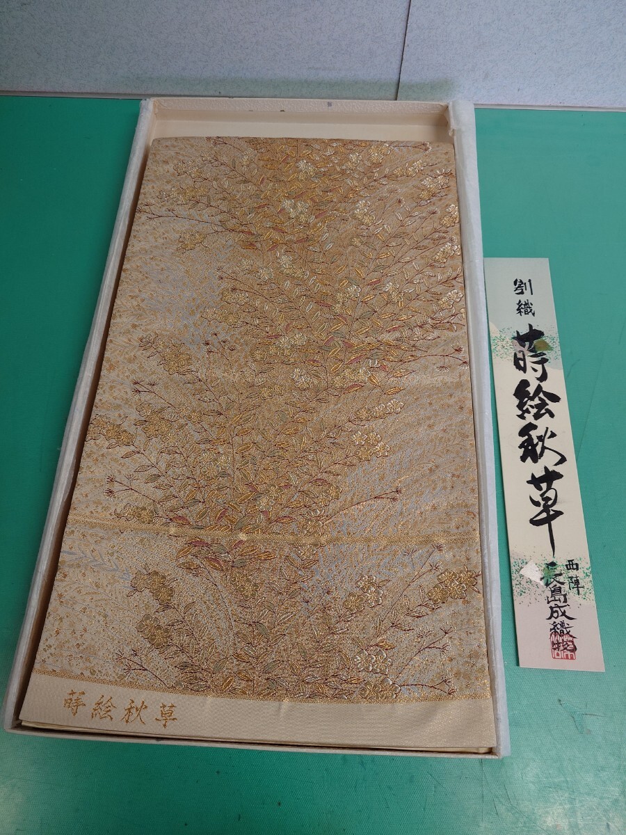 > ● 237 西陣 【長島成織物】【別織 蒔絵秋草】短冊付 高級 袋帯 金彩 金糸 可愛い 小花 秋花 秋草 帯 中古 ③