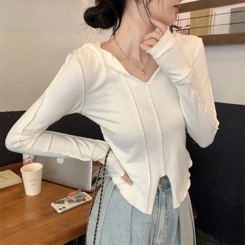 - 1円 同梱不可 カジュアル フード付き長袖シャツ ブラウス フリー アプリコット