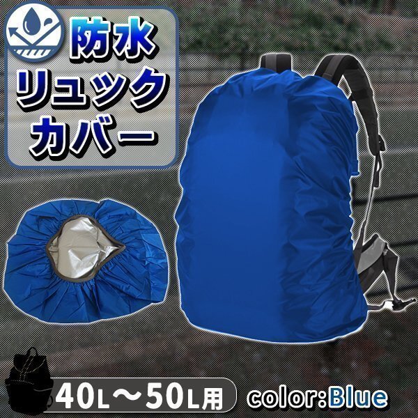 > ★防水 リュックカバー 40~50リットル用 40L 45L 50L ザックカバー レインカバー ゴム ブルー ブラック 青 黒 登山 通勤 通学 青 ブルー