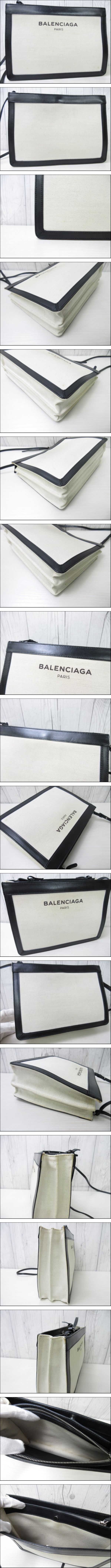 > 美品 BALENCIAGA バレンシアガ ネイビーポシェット ショルダーバッグ クラッチバッグ バッグ キャンバス×レザー ナチュラル×黒2WAY 90971