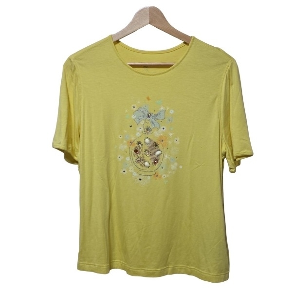 - イタリヤ 伊太利屋/GKITALIYA 半袖カットソー サイズ15 L - イエロー レディース ラインストーン/リボン柄 美品 トップス