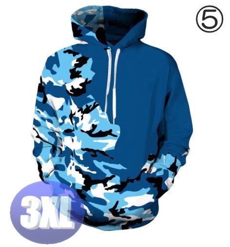 - フード付き 迷彩パーカー カモフラ ブルー 3XL トレーナー アウター 防寒 n721