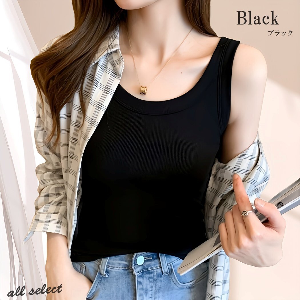 - ブラック タンクトップ レディース 女性 大きいサイズ トップス ノースリーブ 袖なし ラウンドネック 無地 シンプル ベーシック カジュアル